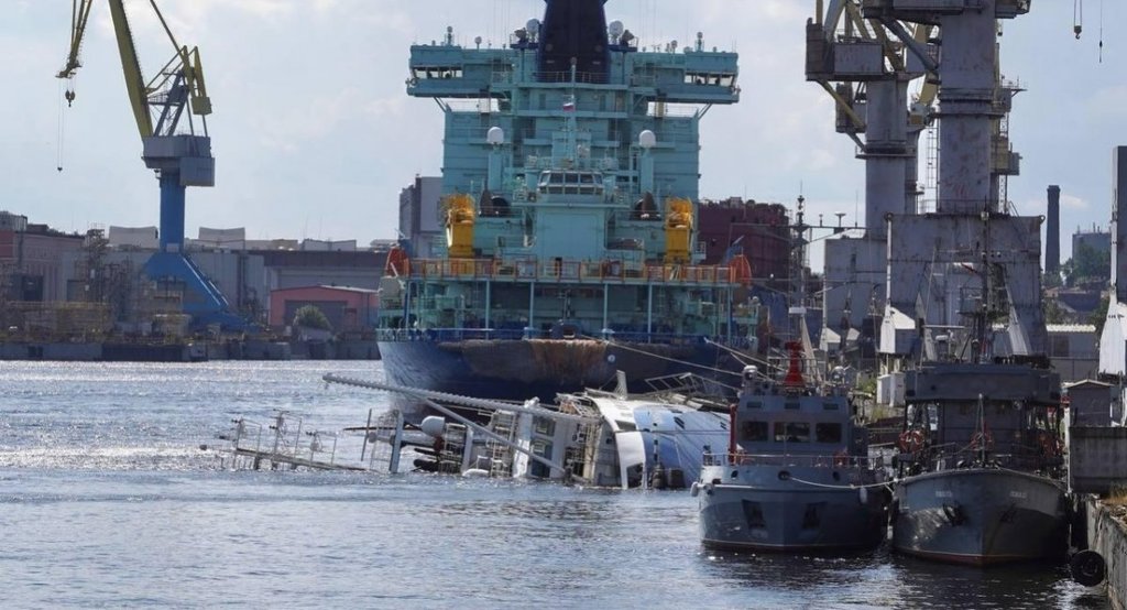 Kapitan Ushakov, a Project 23470 military tugboat commissioned by the russian Ministry of Defense, has capsized and sunk right at the factory pier in St. Petersburg.