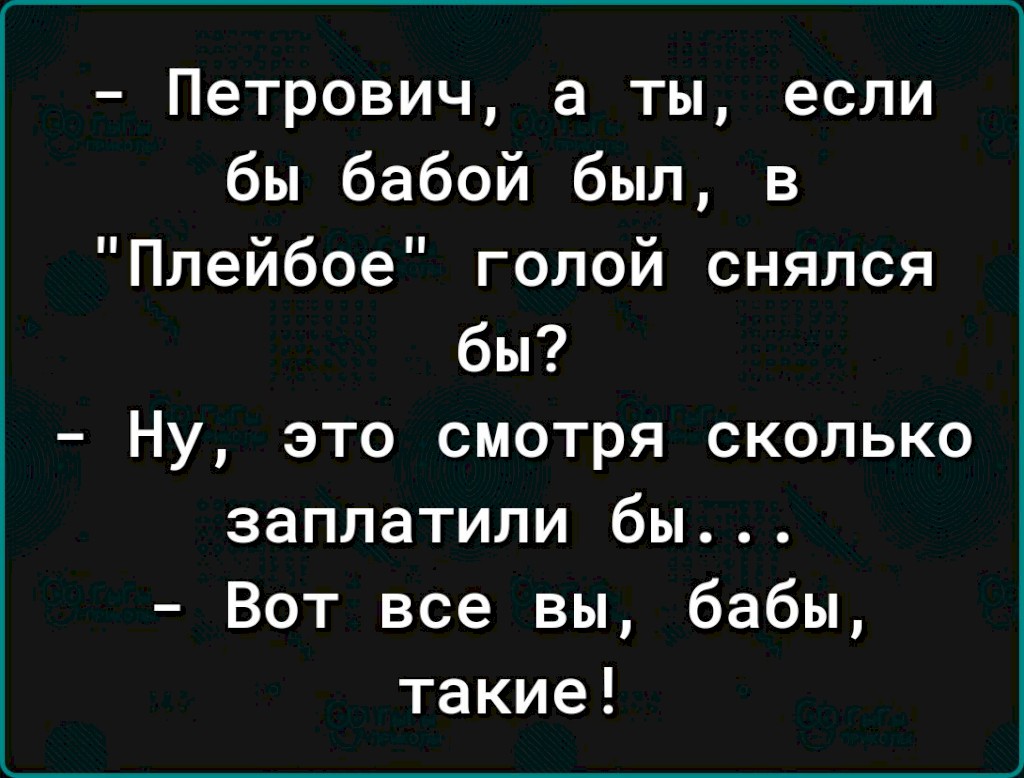 — Ну, блин! Раз такие дела — показывайте сиськи.