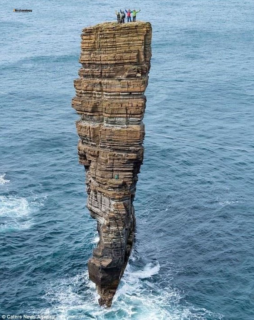 Образованный около 400 лет назад в результате неустанной волновой эрозии красных песчаниковых скал острова Хой на Оркнейских островах, этот 137-метровый монолит геологически молод и поразительно хрупок. Когда-то соединённый с материком, он постепенно был изолирован морем, оставив после себя одинокую колонну, которая, кажется, неудержимо балансирует на фоне разбивающихся волн.