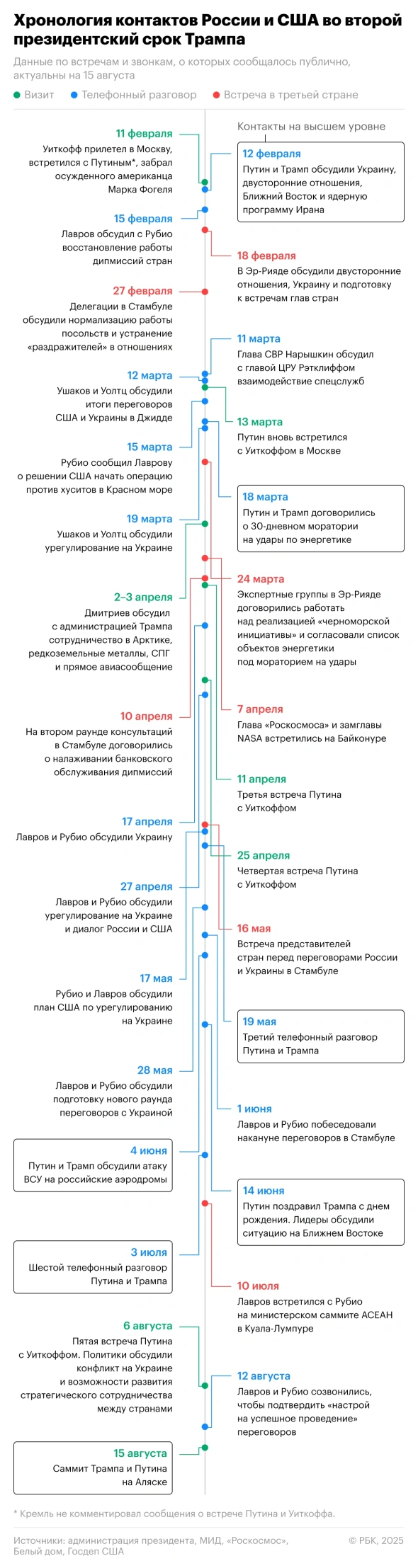 США после прихода к власти администрации Трампа возобновили контакты с Москвой. На протяжении всего 2025 года стороны вели телефонные переговоры, переговорщики посещали Россию и США, встречались в третьих странах.