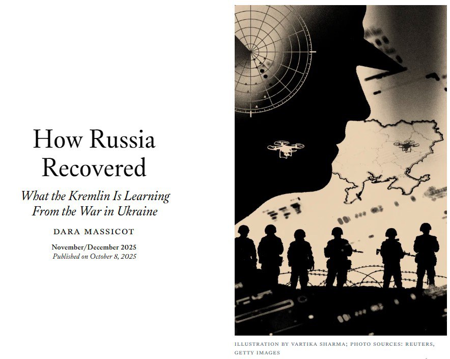▪️Результатами этой перестройки стали новые тактики на поле боя и более совершенное вооружение, пишет Массикот. Москва выработала новые способы применения дронов, превратив прежнюю слабость в преимущество, создала более совершенные ракеты и более надежные и эффективные бронесистемы, говорится в публикации.