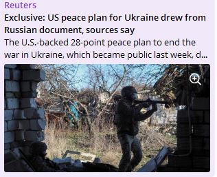 Reuters: мирный план из 28 пунктов был составлен на базе документа, полученного из Кремля