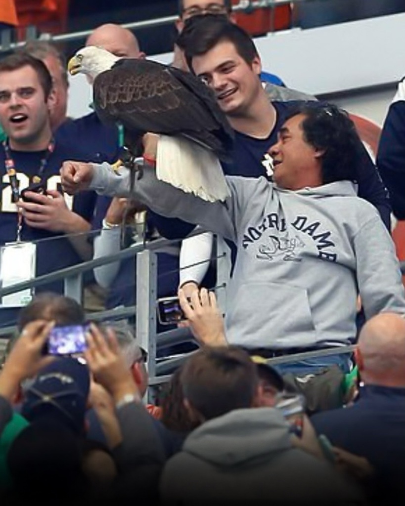 Белый орёл по имени Freedom, участвовавший в церемонии перед игрой, внезапно сбился с курса и приземлился прямо на руку ошеломлённого болельщика.