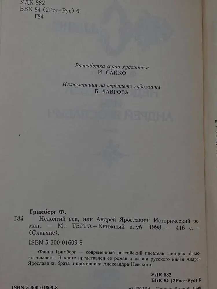 Фаина Гримг - современная российская писательница, историк, филолог - славист. В книге представлен ее роман о жизни русского князя Андрея Ярославича, брата и противника Александра Невского.