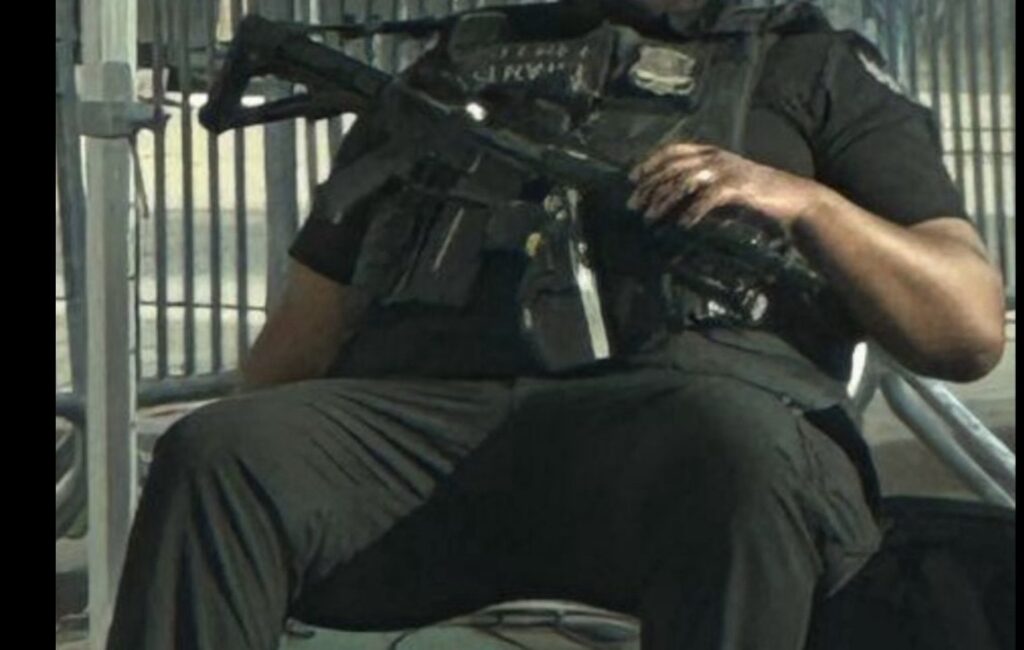 По данным этих источников, этого же офицера, афроамериканца с избыточным весом, также обвиняют в том, что он оставил без присмотра свою полуавтоматическую винтовку (по всей видимости, SR16) во время перерыва в работе по обеспечению безопасности.
