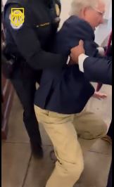 Двое, включая стоявшего рядом сотрудника полиции Капитолия, помогли сенатору подняться. Заметив, что его всё ещё снимают, Макконнелл помахал в камеру и издал какой-то звук, прежде чем его увели.