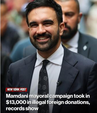 Как сообщает The Post, кампания левого социалиста и одного из главных претендентов на пост мэра Зохрана Мамдани втайне получила почти 13 тысяч долларов потенциально незаконных иностранных пожертвований, включая одно от его тёщи из Дубая.