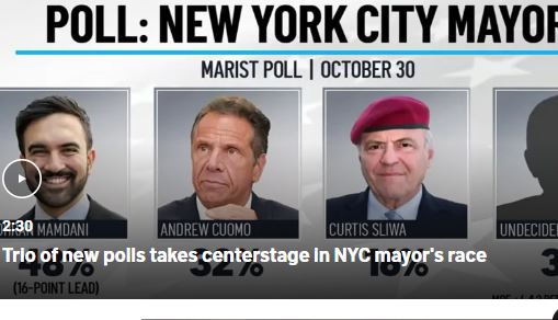Согласно новому опросу Atlas Intel, Мамдани лидирует с 41%, но с гораздо меньшим отрывом, чем в других недавних опросах. Рейтинг бывшего губернатора Нью-Йорка, баллотирующегося как независимый кандидат, стремительно растет, достигая 34%.