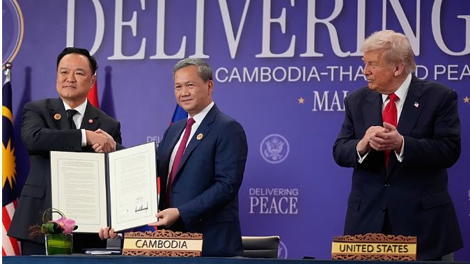 Саммит также позволил Трампу сыграть роль миротворца с Таиландом и Камбоджей, у которых конкурирующие территориальные претензии, что приводит к периодическим вспышкам насилия на границе. В июле в течение пяти дней там произошли жестокие столкновения, в результате которых погибли десятки и были перемещены сотни тысяч человек.