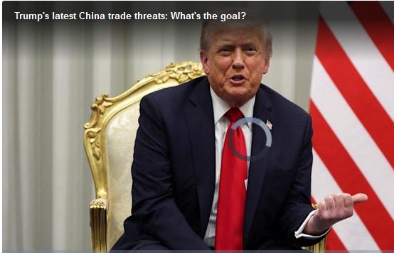В прошлую пятницу Трамп заявил, что США введут дополнительные 100%-ные пошлины на китайские товары с 1 ноября в связи с планом Пекина ввести новые экспортные пошлины на редкоземельные металлы.
